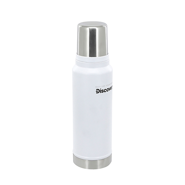 Material: Termo doble capa 100% acero inoxidable, tapón vertedor y capa interna de la tapa 100% polipropileno y burletes 100% de silicona, tapa a rosca capa externa 100% acero inoxidable.